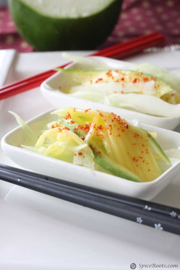 Keri Papaya Chinn or the Mango papaya salad is a popular street food accompaniment in the state of Gujarat in India. Shredded, thin strips of both the fruits, seasoned with salt and a little spice is served with fafda, samosa or any other savory snack you fancy having. I find it to be a refreshing addition to any savory Indian meal. It is easy to confuse this with a thai green mango salad, and I think it might actually be a good substitute as is. The one thing I love about this salad is how simple , yet flavorful this salad is. For …