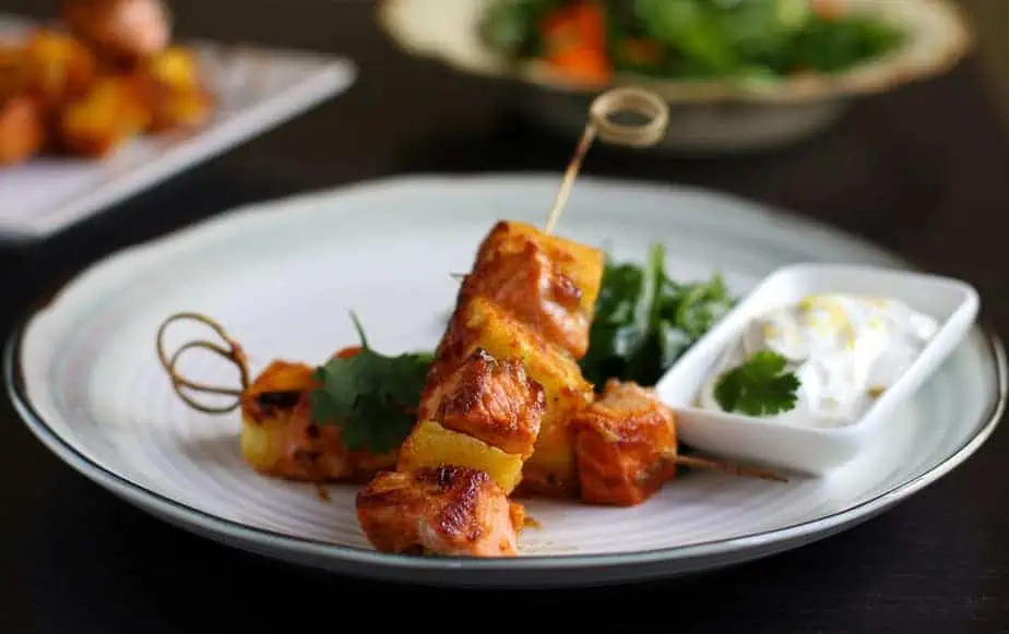 It’s game time again. So what shall I have my friends and family feast on while they are watching the Football game? May be something that matches the raw passionate energy in my living room, has the fire power and deliciousness of a touchdown and is juicier than the remarks of the commentators! May be the Lemon grass infused Salmon and Pineapple kebabs with heat from Korean chilies and a good smokiness from dried ancho peppers. The secret is the glaze. The flavor is the glaze. And the fun is in the glaze. Once you have the glaze ready, you …